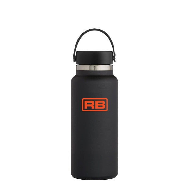 Our RB Black Stainless Steel Water Bottle keeps cold drinks icy cold and hot drinks piping hot for all-day hydration. Its slip free, powder-coated exterior prevents condensation, and is dishwasher safe for easy cleaning. Enjoy 1 Litre's worth of sustainable refreshment on the go, so you can do your part for the planet with a bottle that looks good, too. Drink in style.